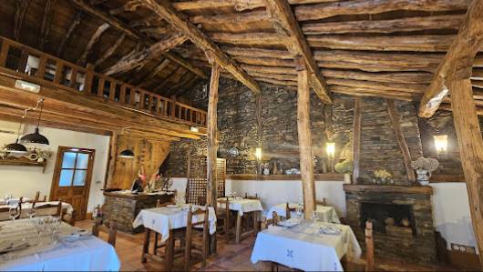 El ambiente es cálido y rústico, con una decoración que refleja la esencia de los pueblos de la Sierra de Guadalajara., y una chimenea preciosa. El mesón ofrece un espacio perfecto para disfrutar de una comida relajada, tanto si se va en pareja, con amigos o en familia. Las vistas y el entorno natural añaden un toque especial que hace que la experiencia sea aún más memorable.